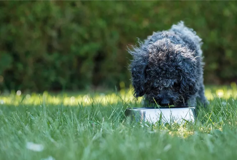 Viele frischgebackene Hundeeltern treibt die Frage um, wie viel der kleine Hund täglich zu sich nehmen soll. Eine Unterversorgung ist genauso problematisch wie eine Überversorgung. Deshalb empfiehlt es sich, den Fütterungsempfehlungen von Fertigfutter zu folgen. Diese richten sich nach dem „Sollgewicht“ des Welpen, damit die Ernährung auch dann förderlich und gesund bleibt, wenn das Tier zum Beispiel zu schnell gewachsen ist. Ein Welpe sollte in den ersten Lebensmonaten immer bis zur vollständigen Sättigung gefüttert werden. Keine Panik, wenn der Futterbedarf des Welpen mal schwankt: Das ist ganz normal und innerhalb eines Wachstumsschubs kann die Menge sogar erheblich variieren.
