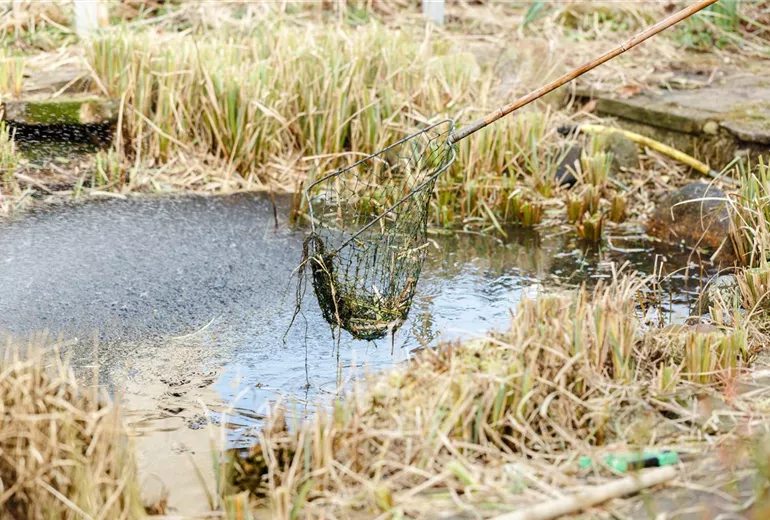 Frostempfindliche Pflanzen wie Wasserhyazinthen oder Lotosblumen müssen vor Kälte geschützt überwintert werden, etwa in einem Eimer voll Wasser an einem hellen und frostfreien Ort. Einheimische Pflanzen wie Wasserschwertlilien und Froschlöffel dagegen können im Teich verbleiben. Das gilt auch für die meisten Seerosen. Wenn Pflanzen allerdings zu stark wuchern, sollten sie z.B. mit einer Teichschere zurückgeschnitten werden.